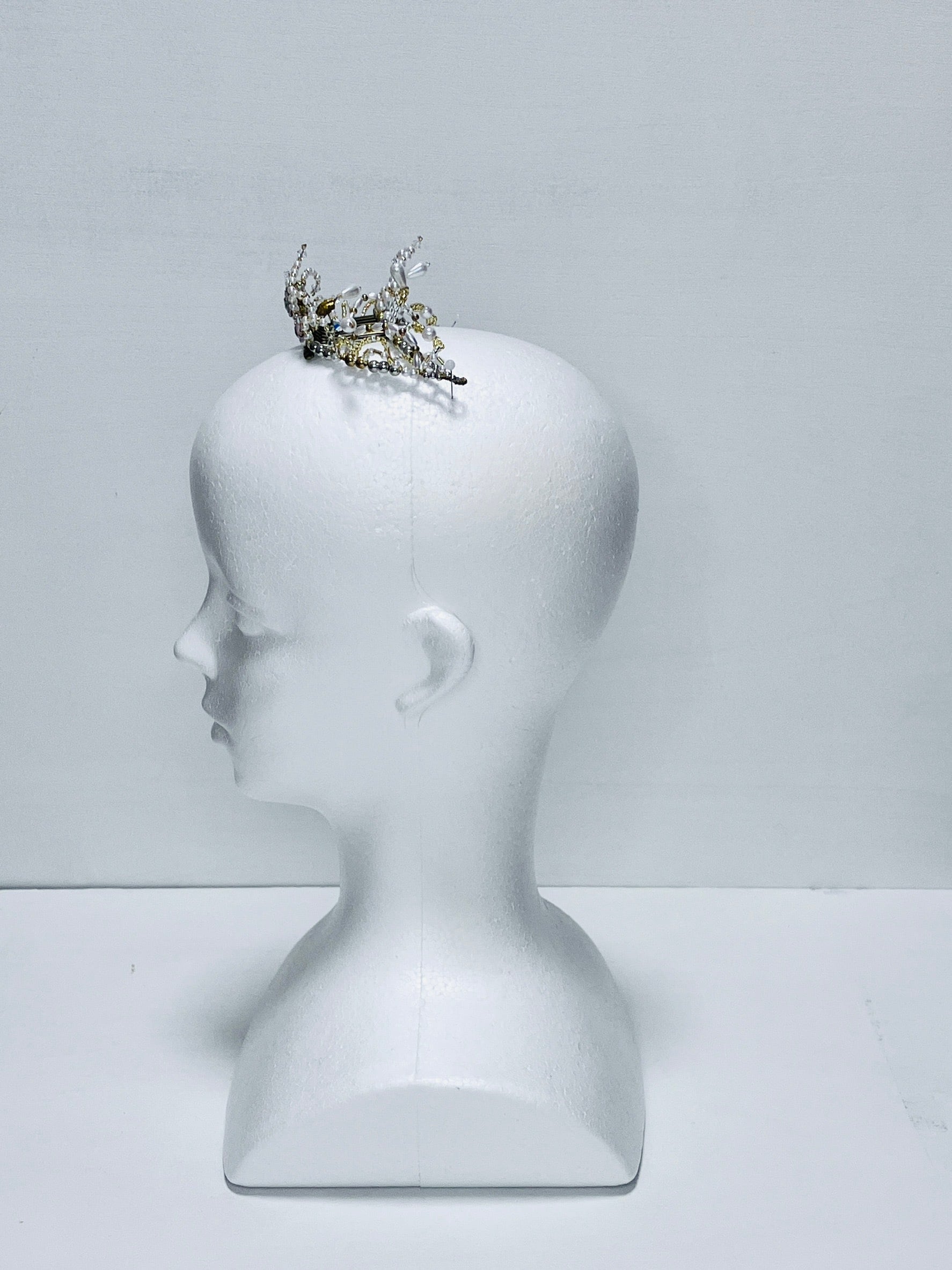 パールとメタルビーズをたっぷり使用した豪華なティアラです